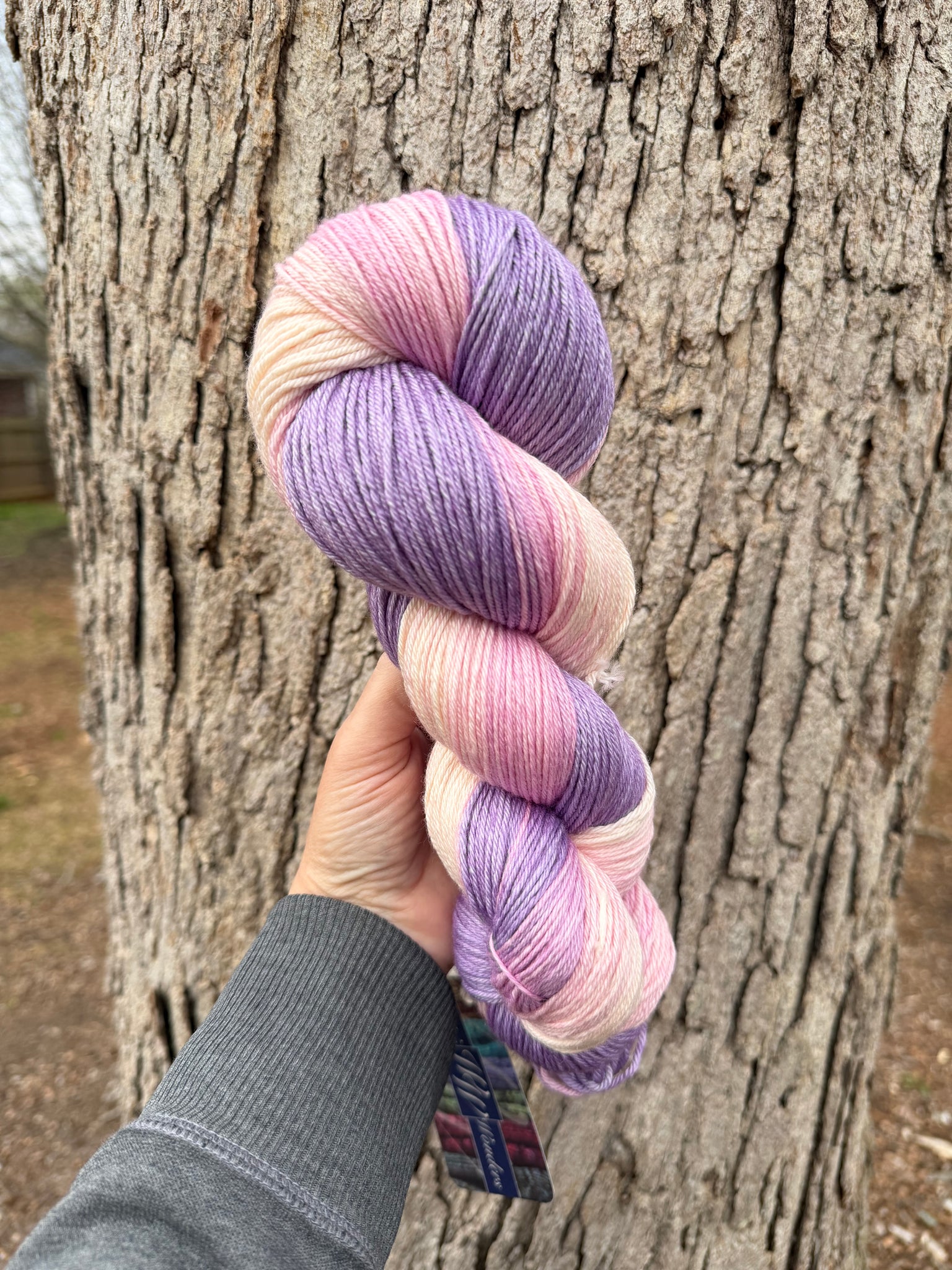 Gradient Dyed Yarn! This Hand dyed yarn runs from color to color. The soft changing of colors make knitting a shawl super fun! I love watching the colors deepen and change with every row. This is a larger skein of DK weight yarn. Great for shawl making.