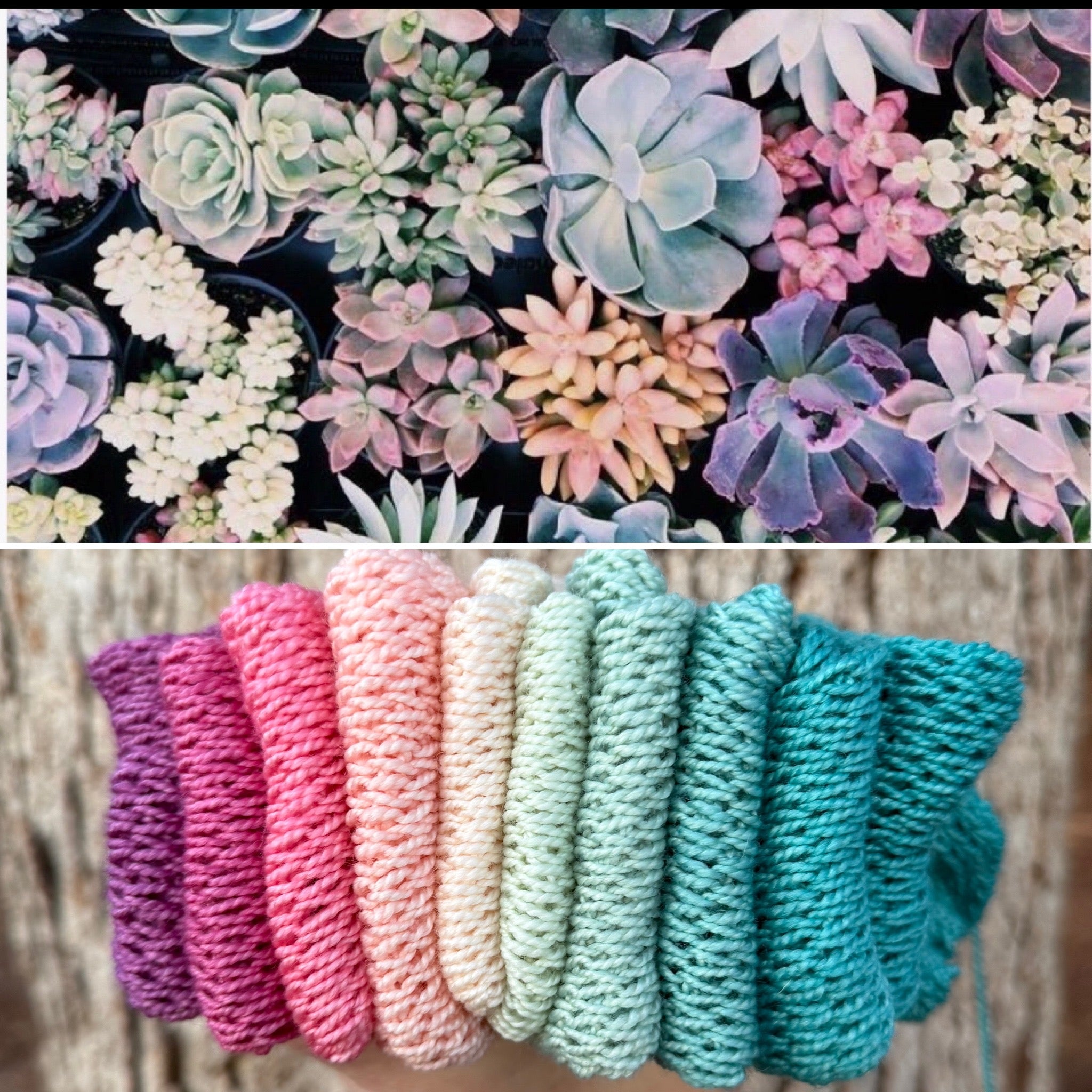 Color: Mayflowers - pink/lavender, pink, peach, natural cream light teal that darkens