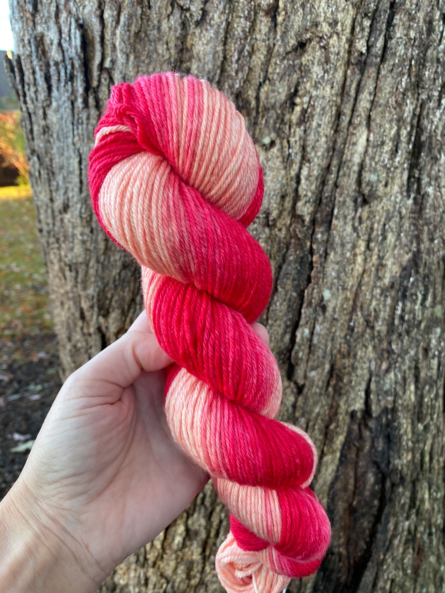This skein is dyed in a Gradient fashion. Meaning that one end of your skein is dark in color and the other end is a lighter shade. This is great for making hats and cowls.